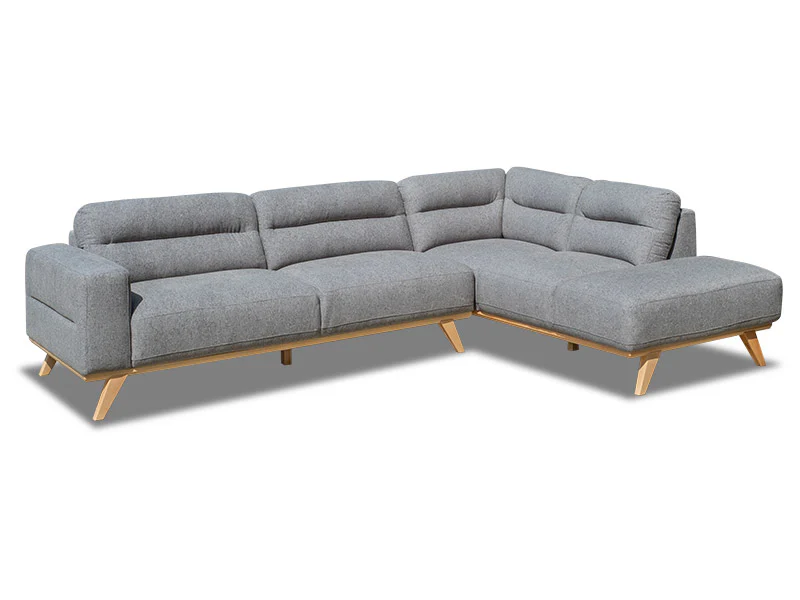 Beneton terminal chaise in beautiful Storm fabric. Superbly comfortable seating with terrific back and lumbar support. All around natural timber trim, and timber legs, to complete the modern look.