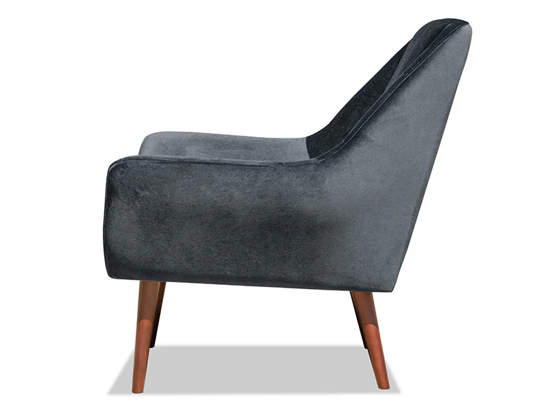 Janey chairs are a touch retro with a nod to the clean lines from Scandinavian design. Classically sophisticated with timber legs and plush velvet fabric. Available in four fashionable colours. Pictured in Grey.