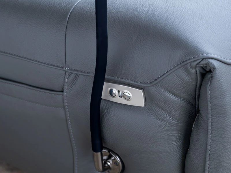 Taffy in leather features a USB outlet, touch button electric recliner with a swivel rocker base so you can rotate and gently rock in the chair, and a flexible phone pole to keep your device close. Superb in 100% leather. Comfort and support from tailored cushioning and foam fill. Available in other colours. Armless design. Side pockets. Also available in fabric.