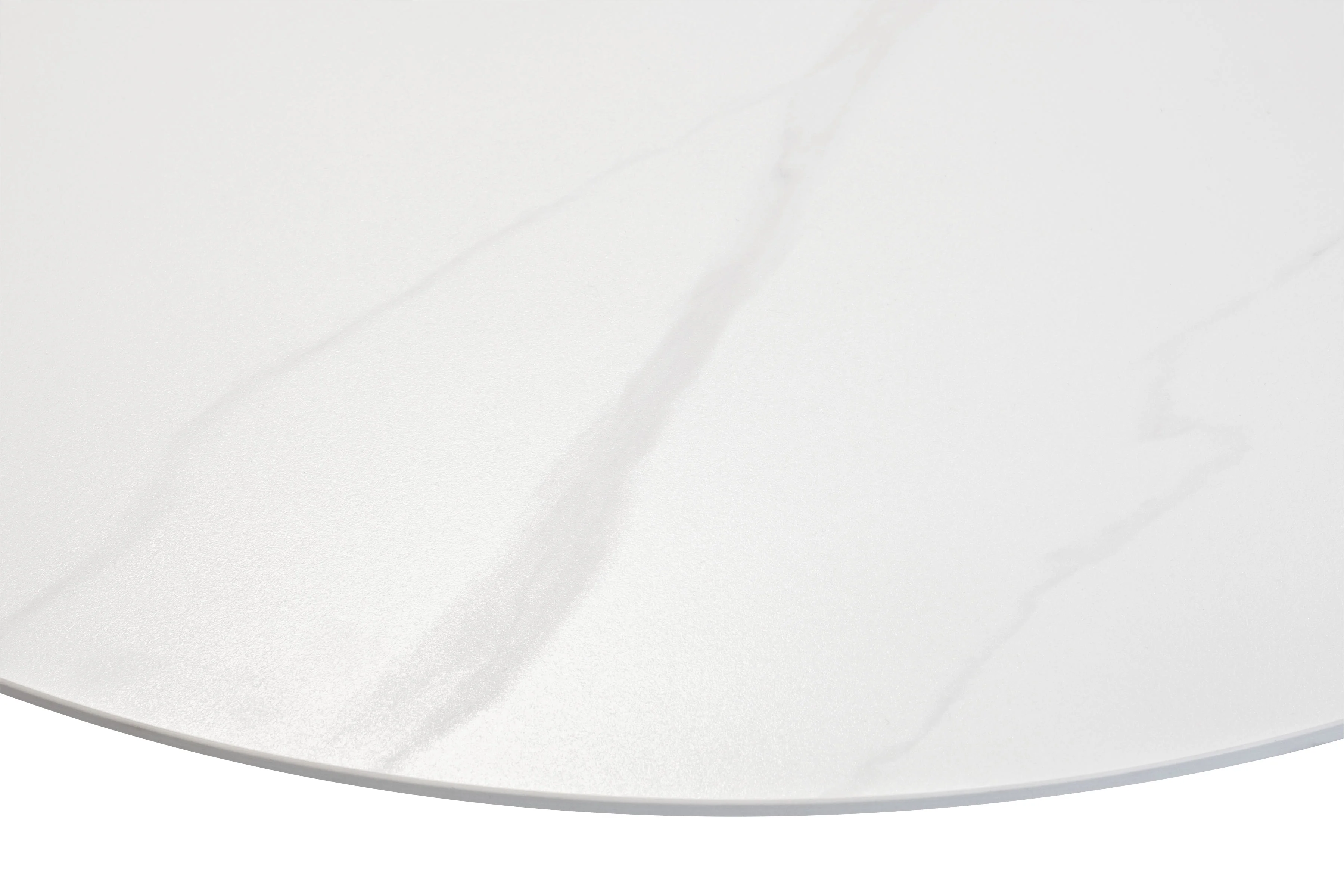 Tokyo round table has a distinctive ceramic top which is highly resistant to stains and scratches. Colour is Snow White. The frame and legs are powdercoated metal for strength. Different, practical, beautiful dining. Also available in Bulgarian Grey colour.