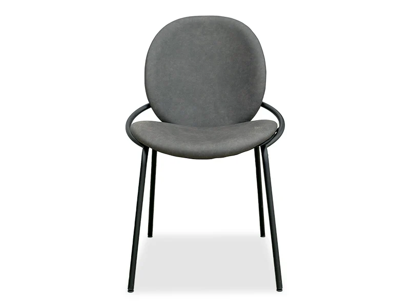 Vesta dining chairs in dark grey, easy-care PU material. Steel legs and a curved steel seat rim give Vesta a unique look. Perfect in your kitchen or dining area, Vesta is stylish and comfortable seating.